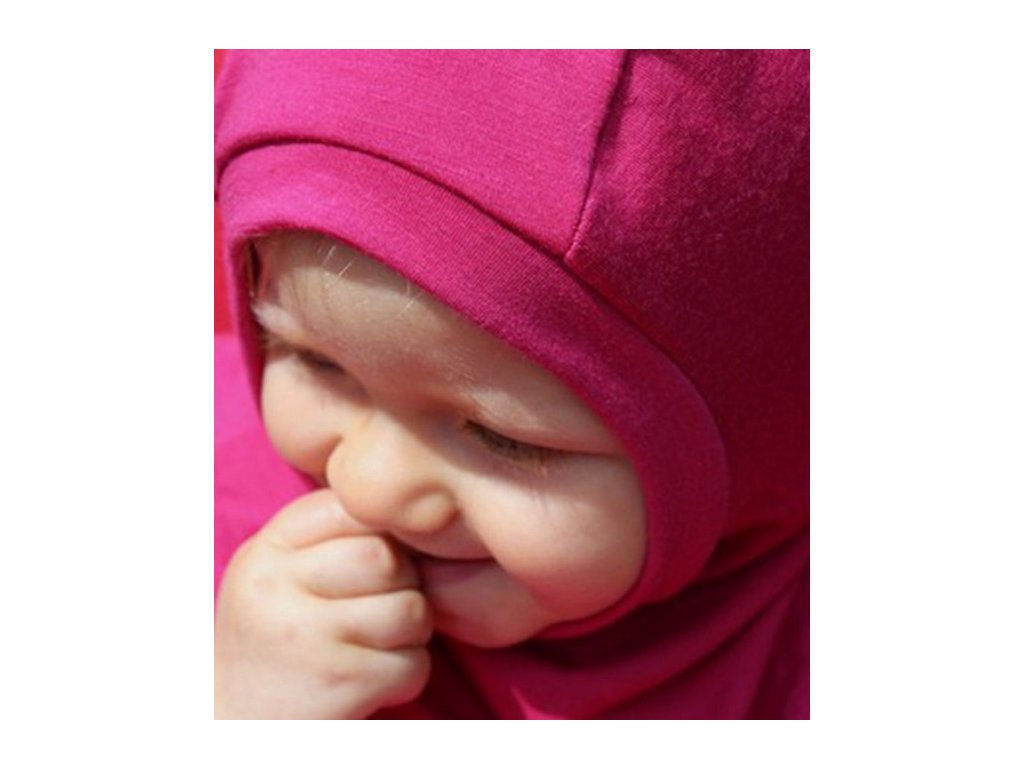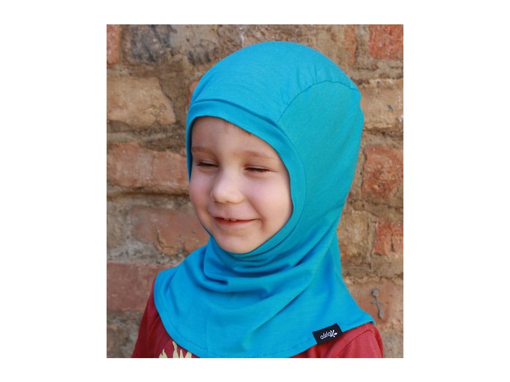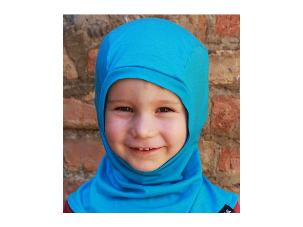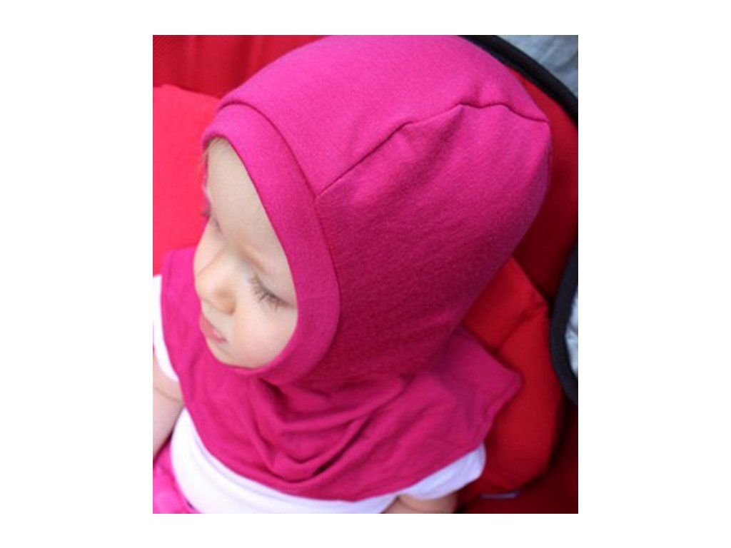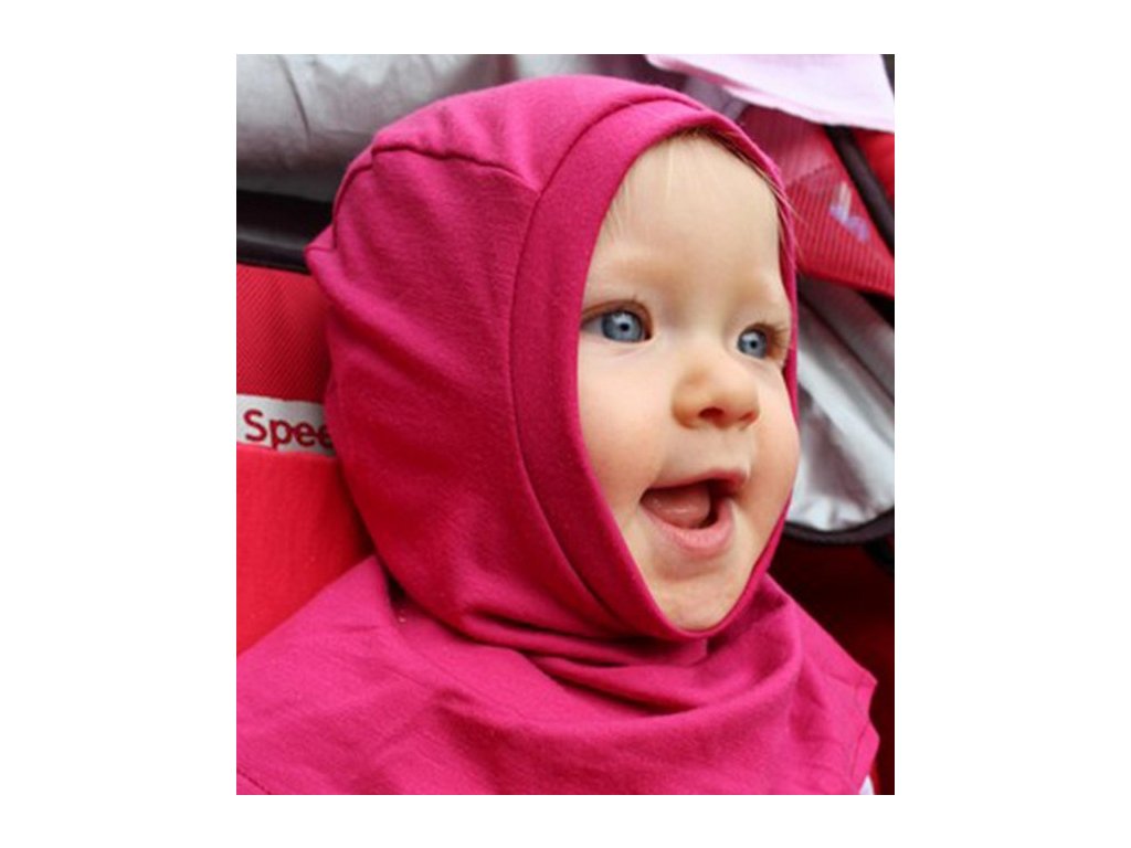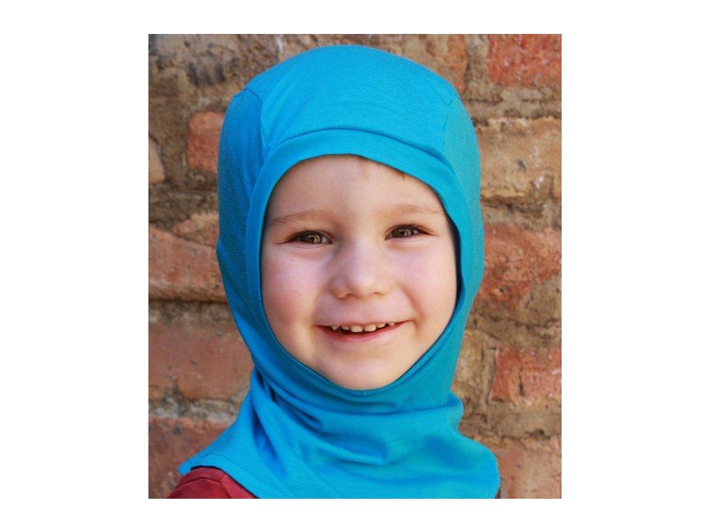 Kuklička (sloní čepice) chránící celou hlavičku, krk a ramínka s jednoduchým nasazováním, bez zbytečného vázání. Z merino vlny, která je na tento druh pokrývky hlaviček nejvhodnější - těsně přiléhá, chrání před změnami teplot a je k pokožce příjemná jako pohlazení od maminky.