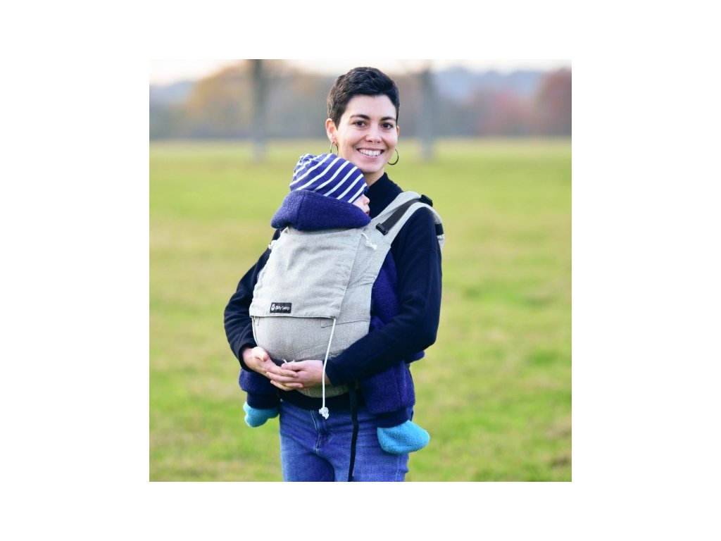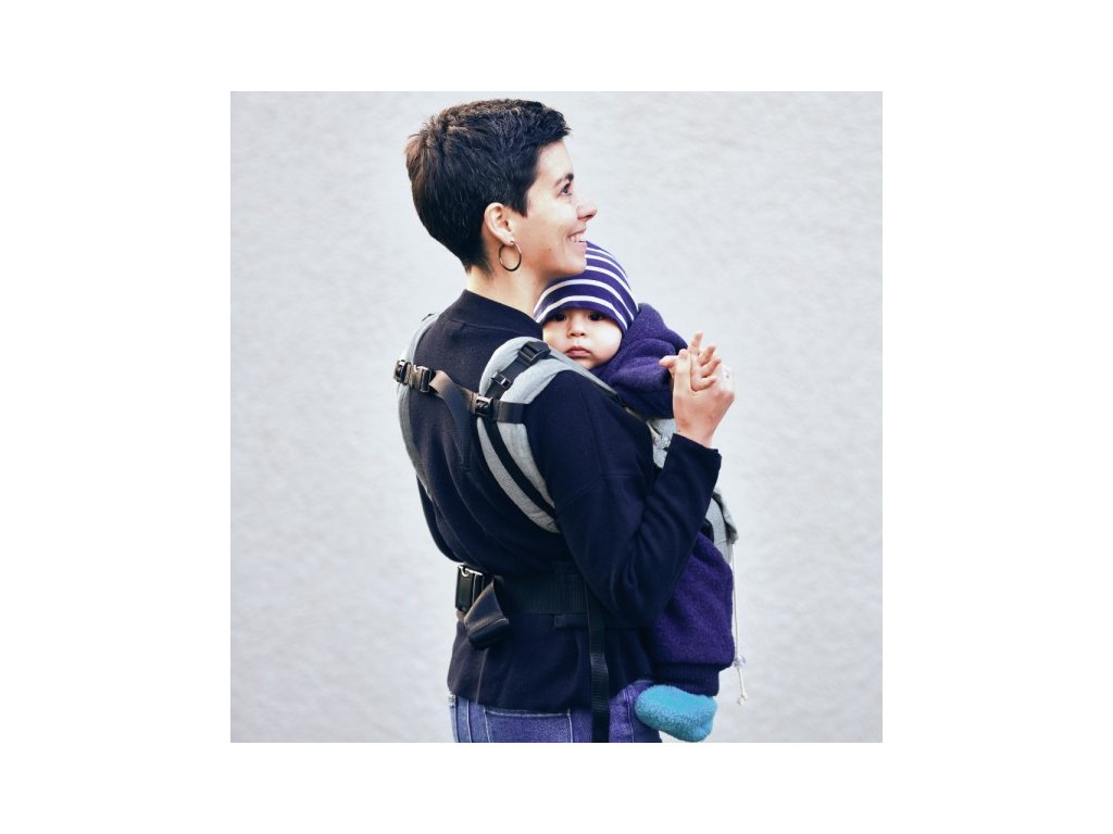- ramenní pásy - ramenní a bederní pásy se zapínají na přezky. Ramenní popruhy je samozřejmě možné nosit jak klasicky, tak překřížené, tedy přesně tak, jak Vám to nejvíc vyhovuje. U menších dětí jsou popruhy vedeny pod nožičkama a zacvaknuty do patentované M-přezky pod zadečkem dítěte. Díky tomu jsou i úplně malá miminka umístěná v nosítku bezpečně a ve správné abdukčně-flekční poloze. Při nošení novorozence nebo malých dětí jsou ramenní popruhy vedeny vždy pod nožičkama dítěte. Při nošení většího dítěte nebo při nošení na zádech je možné připnout ramenní popruhy do boku zádového panelu. Dvě volně posunovatelné měkké vycpávky zvyšují komfort při nošení – na popruzích je možné posunout je přesně tam, kde Vám budou nejpříjemnější.