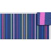 Proužkový vzor ze 100% biobavlny, základním tónem je velmi tmavá modrá.