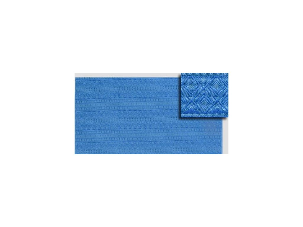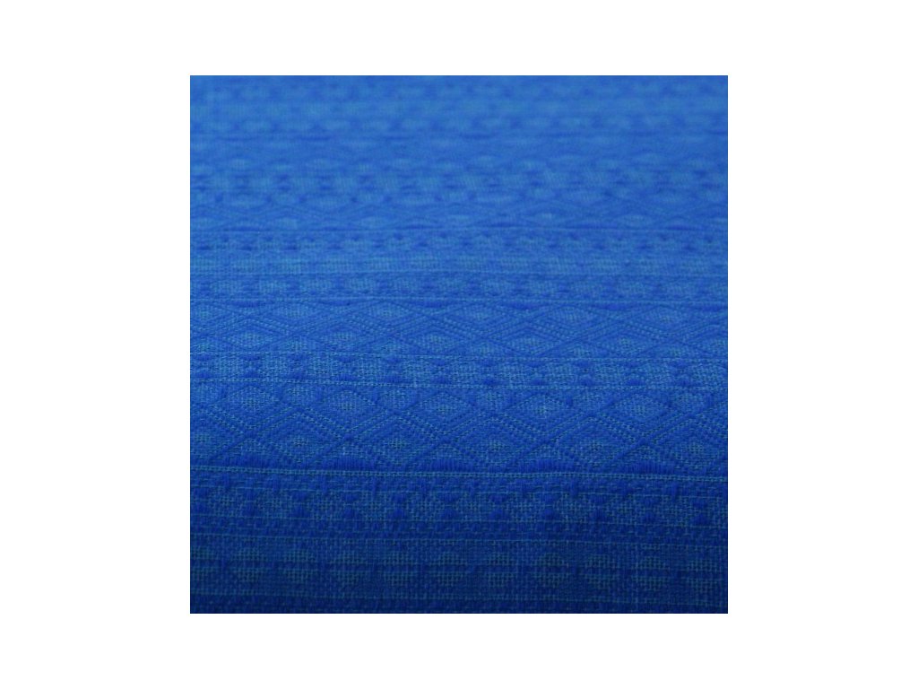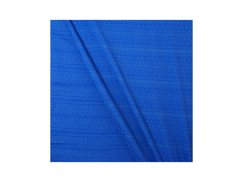 Žakárová vazba ze 100% biobavlny, kombinace tmavě modré a zelené barvy..