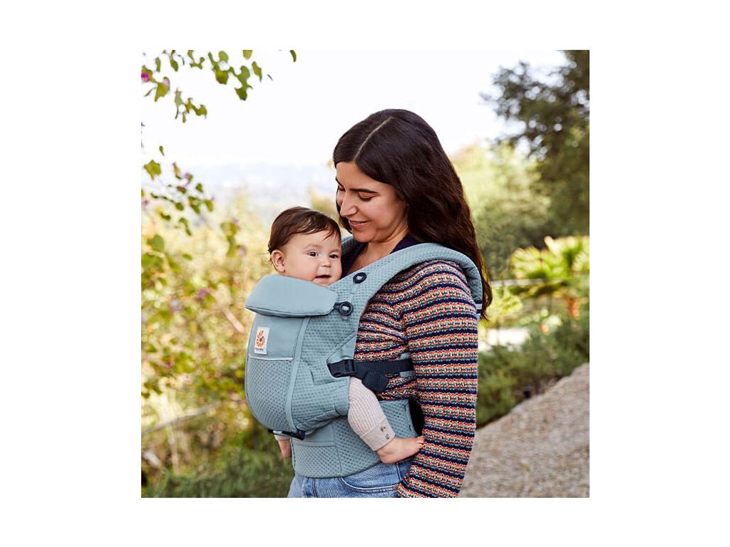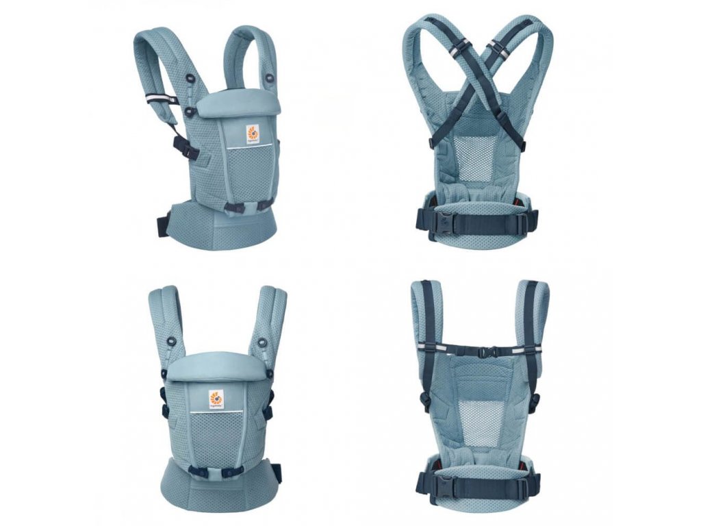 - materiál - nosítko Ergo Baby ADAPT je vyrobeno ze síťoviny SoftFlex™ Mesh pro maximální proudění vzduchu. Nosítko lze samozřejmě nosit běžně i v zimě, kdy se používají kapsy či bundy se vsadkou pro zateplení dítěte. Spony nosítka Adapt jsou testované v přísných spotřebitelských testech, zesílené švy na celé textilii, vyztužené vnitřní spoje v místech s vyšší zátěží