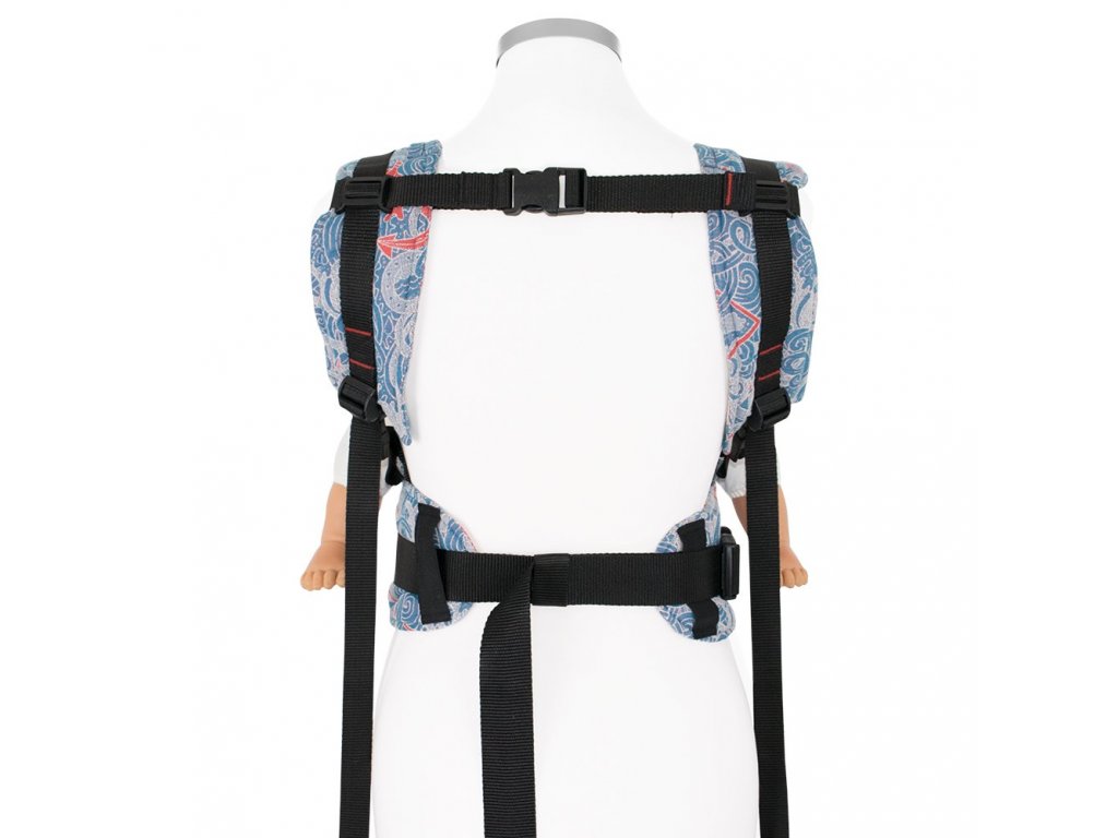 - šířka i délka zádové opěrky lze upravit, tak lze nosit i málá miminka bez novorozenecké vložky
