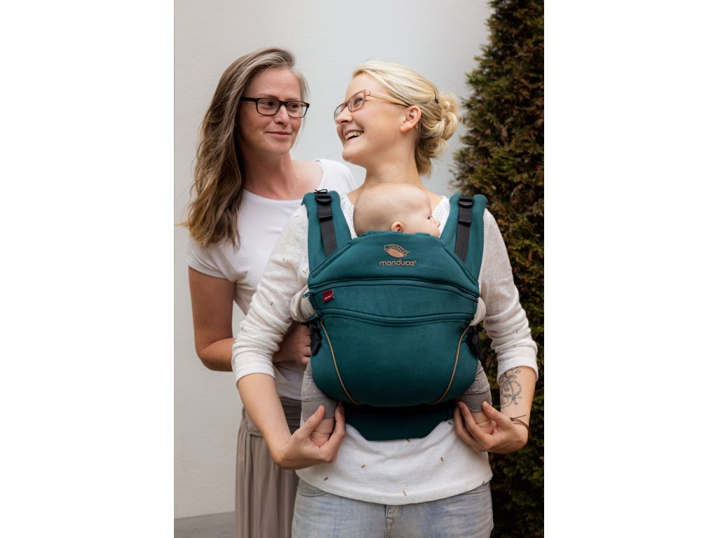 - pohodlí - speciálně tvarovaný bederní pás a bohatě polstrované ramenní popruhy dokonale rozkládají váhu mezi ramena, záda a bedra. Všechny spony jsou podloženy Manduca-polstrováním - aby spony netlačily.