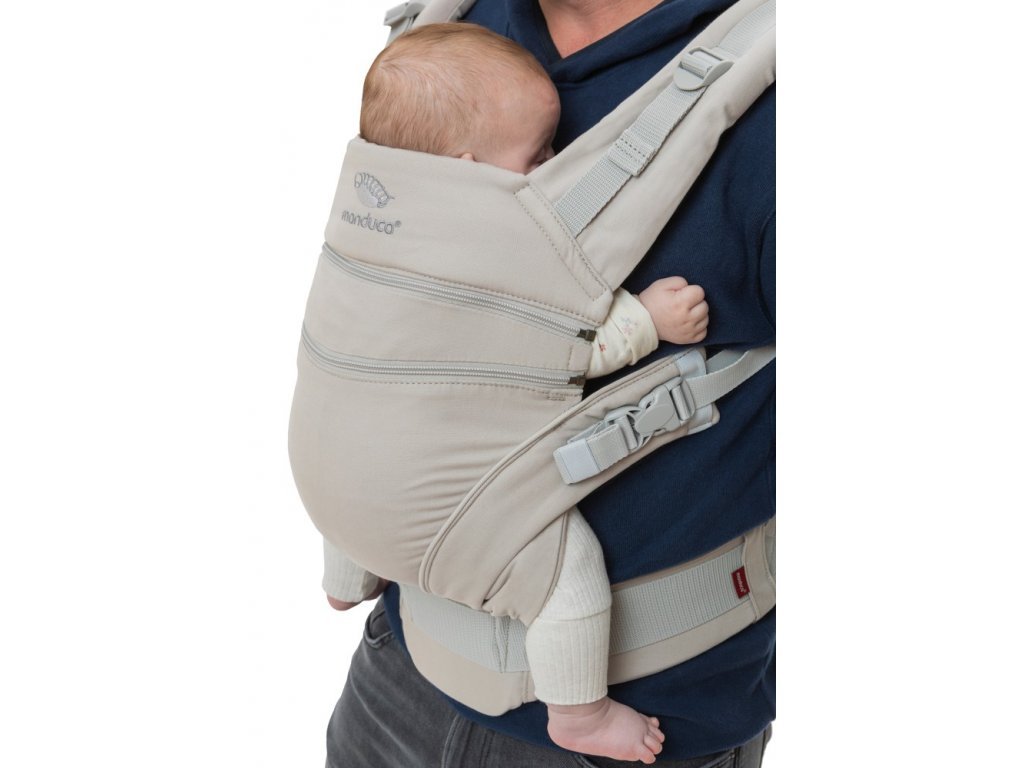 - bezpečí - Manduca XT Evropské normě CEN/TR 16512:2015, jednotlivé detaily nosítka jsou zpracovány tak, aby odpovídaly nejnáročnějším požadavkům na bezpečné nošení: spona na bederním pásu s trojitým jištěním, elastická poutka u všech spon, zabraňující nechtěnému rozepnutí popruhů, kapuce k fixaci hlavičky spícího dítěte; pro výrobu se používají netoxické materiály.