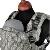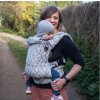 - manipulace - před prvním použití si nastavíte potřebnou šířku středového panelu (zádové opěrky). Bederní pás si zapnete pomocí přezky. Miminko si dáte na hrudník čelem k sobě s roztaženýma nožičkama. Přetáhněte přes miminko středový panel, nasaďte ramenní popruhy, zajistěte a dotáhněte. Větším dětem lze také při nošení vepředu i na zádech zajistit při spaní hlavičku pomocí kapucky k tomu určené.