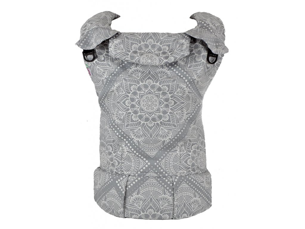 - manipulace - před prvním použití si nastavíte potřebnou šířku středového panelu (zádové opěrky). Bederní pás si zapnete pomocí přezky. Miminko si dáte na hrudník čelem k sobě s roztaženýma nožičkama. Přetáhněte přes miminko středový panel, nasaďte ramenní popruhy, zajistěte a dotáhněte. Větším dětem lze také při nošení vepředu i na zádech zajistit při spaní hlavičku pomocí kapucky k tomu určené.