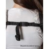 - U nových nosítek MoniLu je hrudní přezka magnetická, lze ji ovládat jednou rukou. Zapne se přiblížením obou konců blíže k sobě a rozepne se vysunutím horní části přezky směrem nahoru. Pozici hrudního pásku lze regulovat