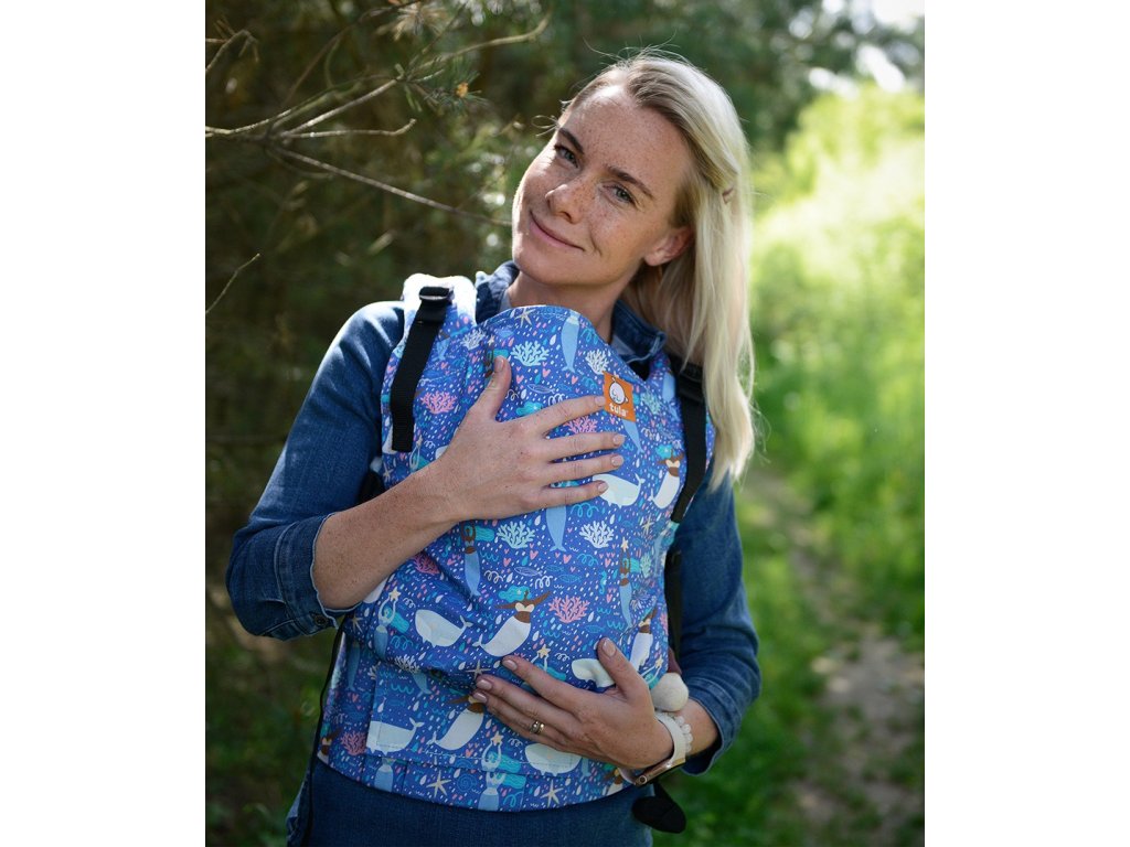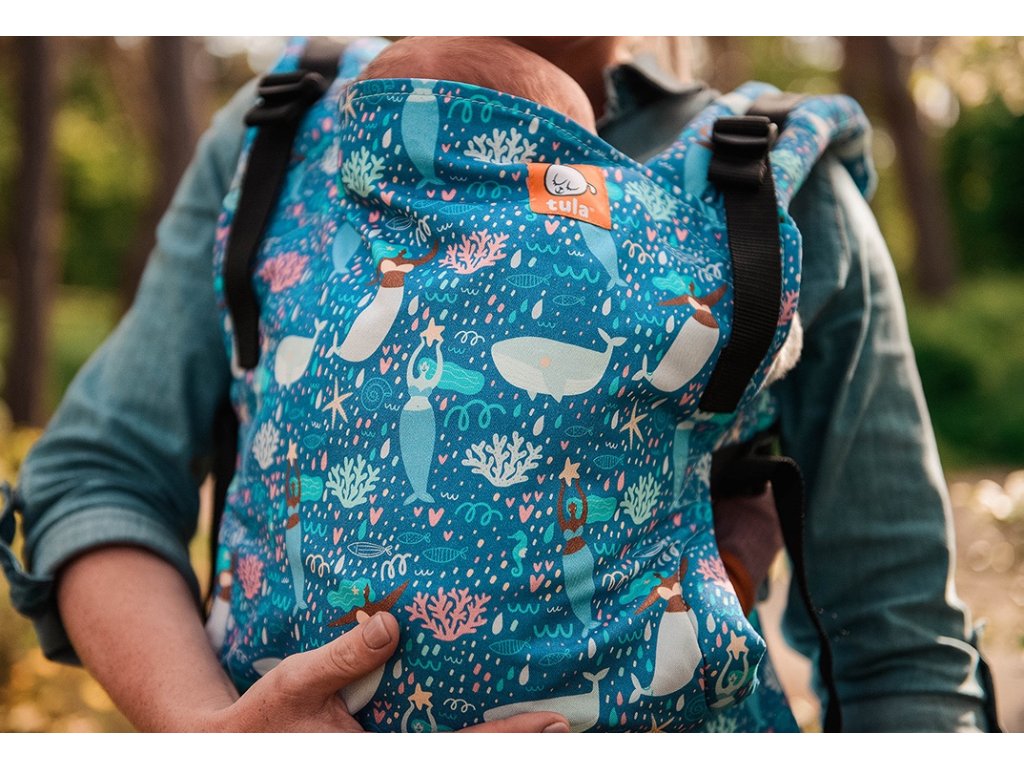 - Jednoduchá manipulace - stejně jako u ostatních ergonomických nosítek je manipulace s Tulou Free to Grow velice jednoduchá. Značka Tula sází na jednoduchost. Před nasazením nosítka si nastavíte jeho velikost, aby odpovídal velikosti miminka. U novorozence odepnete patentky na vnitřní straně bederního pásu, stáhnete a zajistíte na první patentek - nejužší nastavení, na obou stranách musí být zajištěno na stejný patentek. Pomocí stahovací popruhů v horní části zádové opěrky stáhnete nosítko na minimální výšku zádové opěrky. Nosítko zapnete kolem pasu, nandáte miminko, nasadíte ramenní popruhy, zapnete a jdete. Zkuste shlédnout některá videa a uvidíte, jak je vše jednoduché.